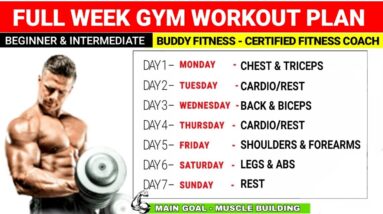 Full Week Gym Workout Plan For Muscle Gain | Beginners & Intermediate